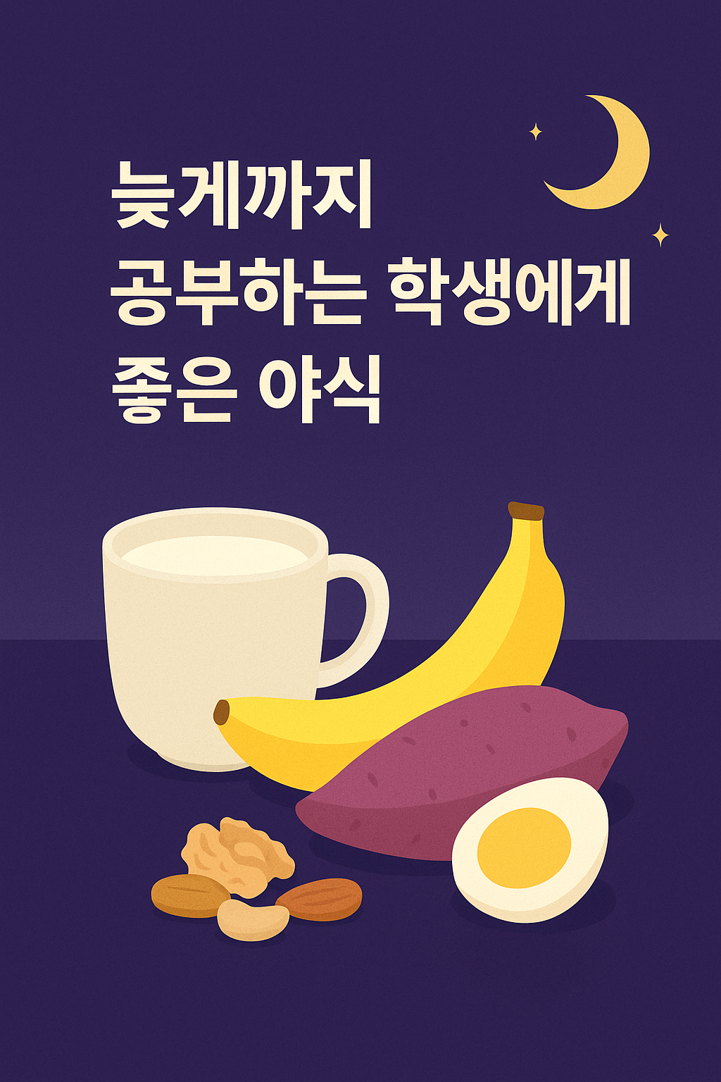 오늘 밤, 과자 대신 따뜻한 고구마나 바나나를 준비해보는 건 어떨까요? 작은 변화가 공부 집중력을 지켜주는 큰 차이가 됩니다.