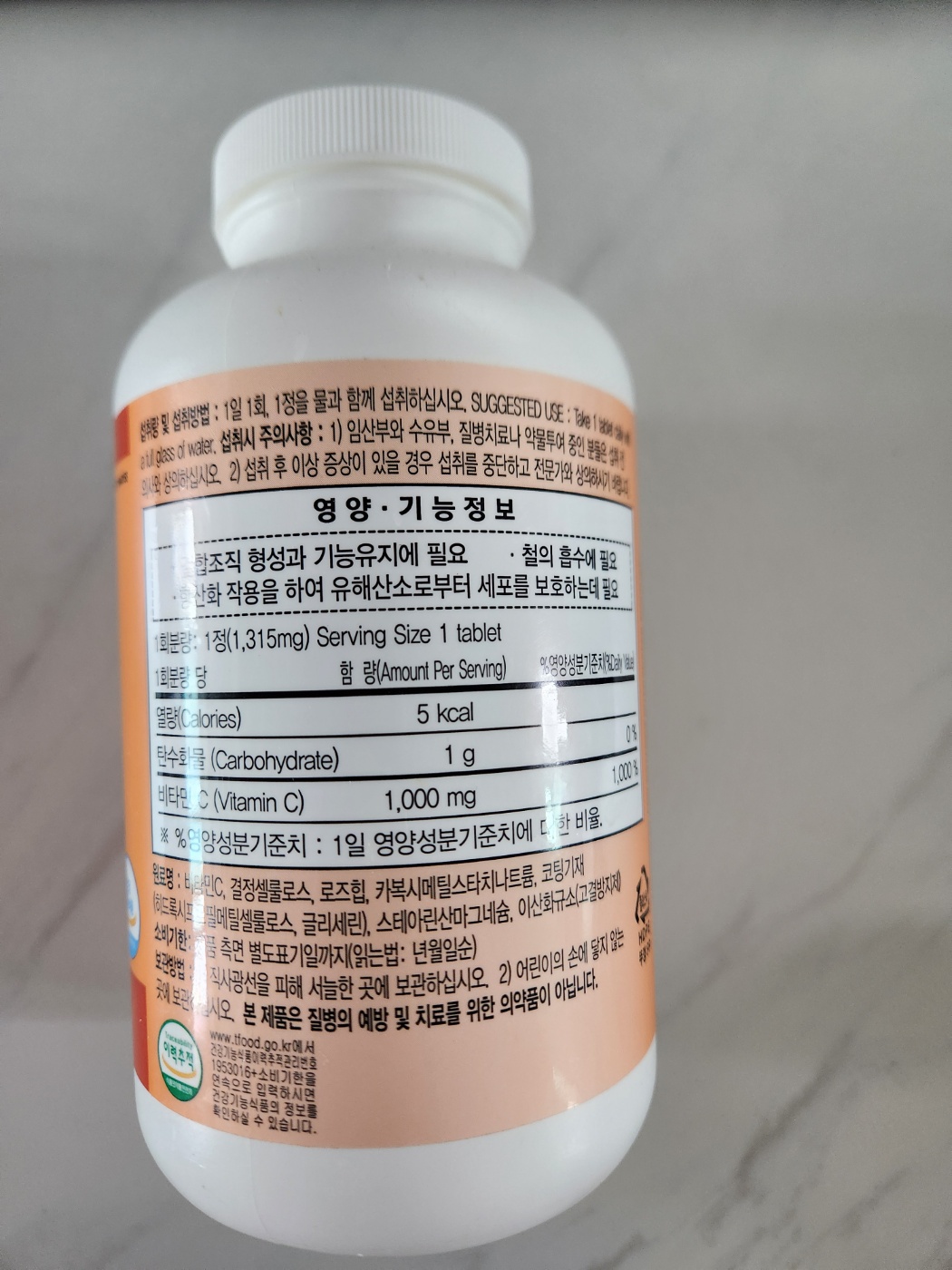 비타민C 용량이 1000mg 이고, 무려 500정이나 들어있다.